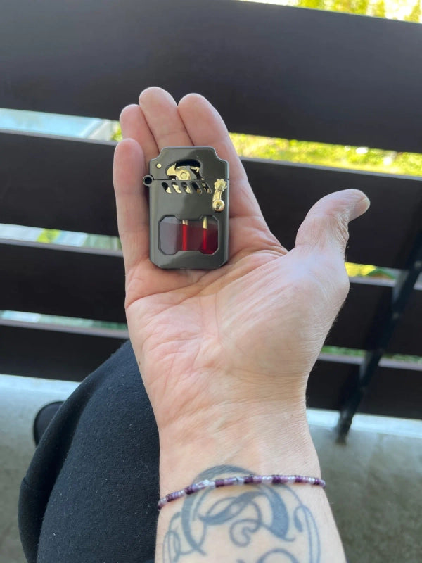 Elevate your everyday carry with the Mechanical Lighter. Its futuristic design and visible mechanics make a bold statement about your unique style.